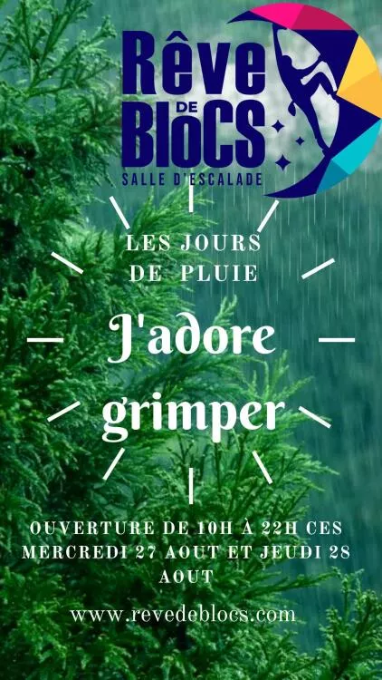 quand le ciel a décidé de nous tomber sur la tête et d'humidifier copieusement tout nos beaux sites extérieurs On vous ouvre nos portes plus tôt pour que vous puissiez assouvir votre désir de grimper :-) on vous fera passer les infos sur le site , sur les reseaux ainsi que sur google....